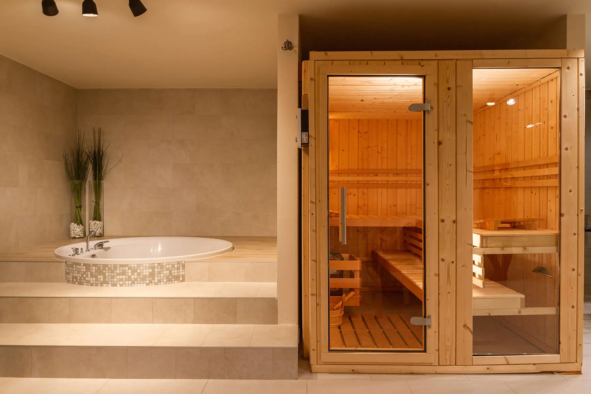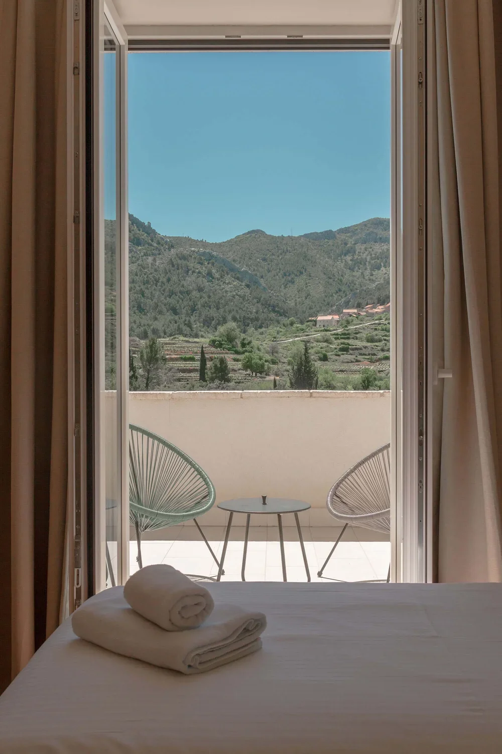 Outside, two sunlit pools overlook mountains, while panoramic terraces invite stretches of al fresco lounging. Inside, saunas, cozy hot tubs, and spacious rooms create a sanctuary for deep restoration.